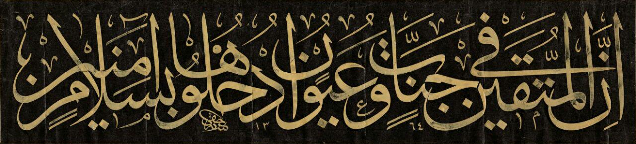 ان المتقين في جنات وعيون ادخلوها بسلام آمنين بخط الخطاط احمد اسكندراني Islamic Art Art Arabic Calligraphy